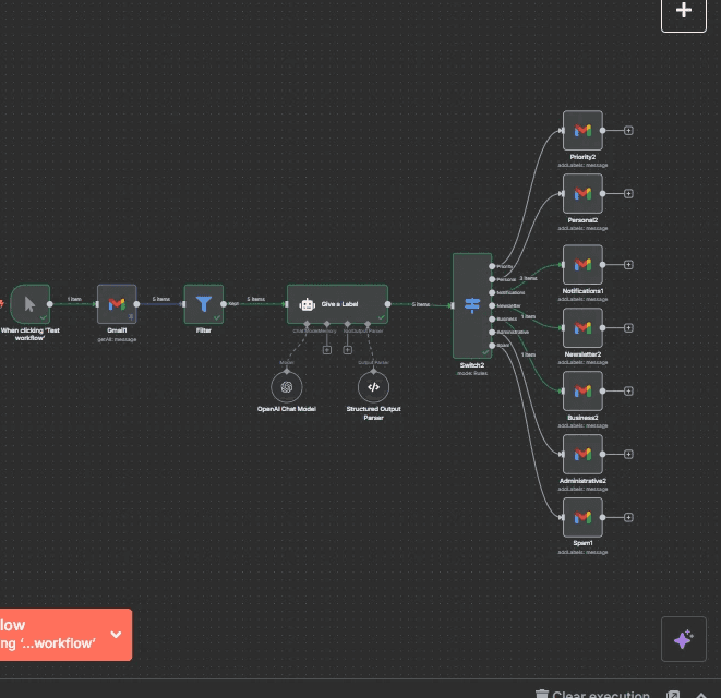 This project automated the process of sorting and labeling incoming emails by using an n8n workflow integrated with AI.