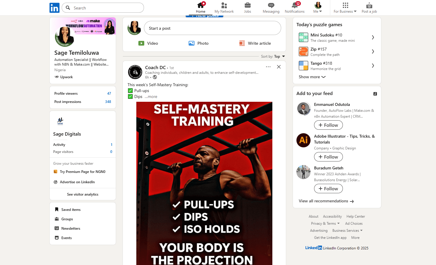 This project automated the creation and posting of LinkedIn updates using an n8n workflow integrated with AI-powered content generation and image creation.