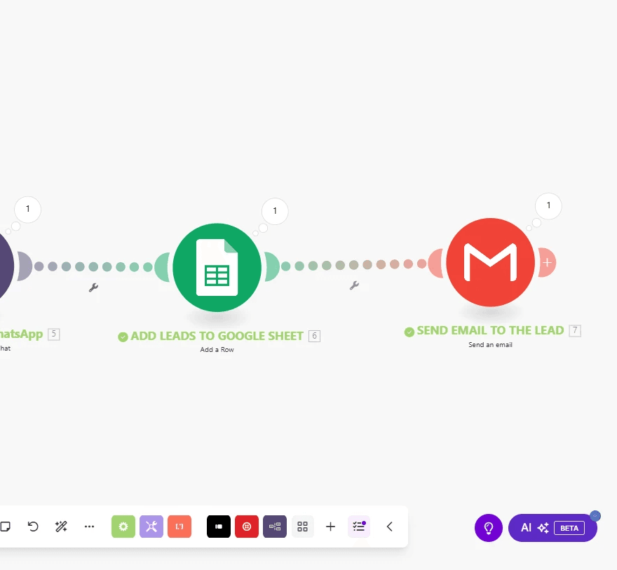 The client needed a system that could instantly capture lead details from Typeform responses, store them in an organized database, send an introductory WhatsApp message, and follow up with an email, all without requiring human involvement.