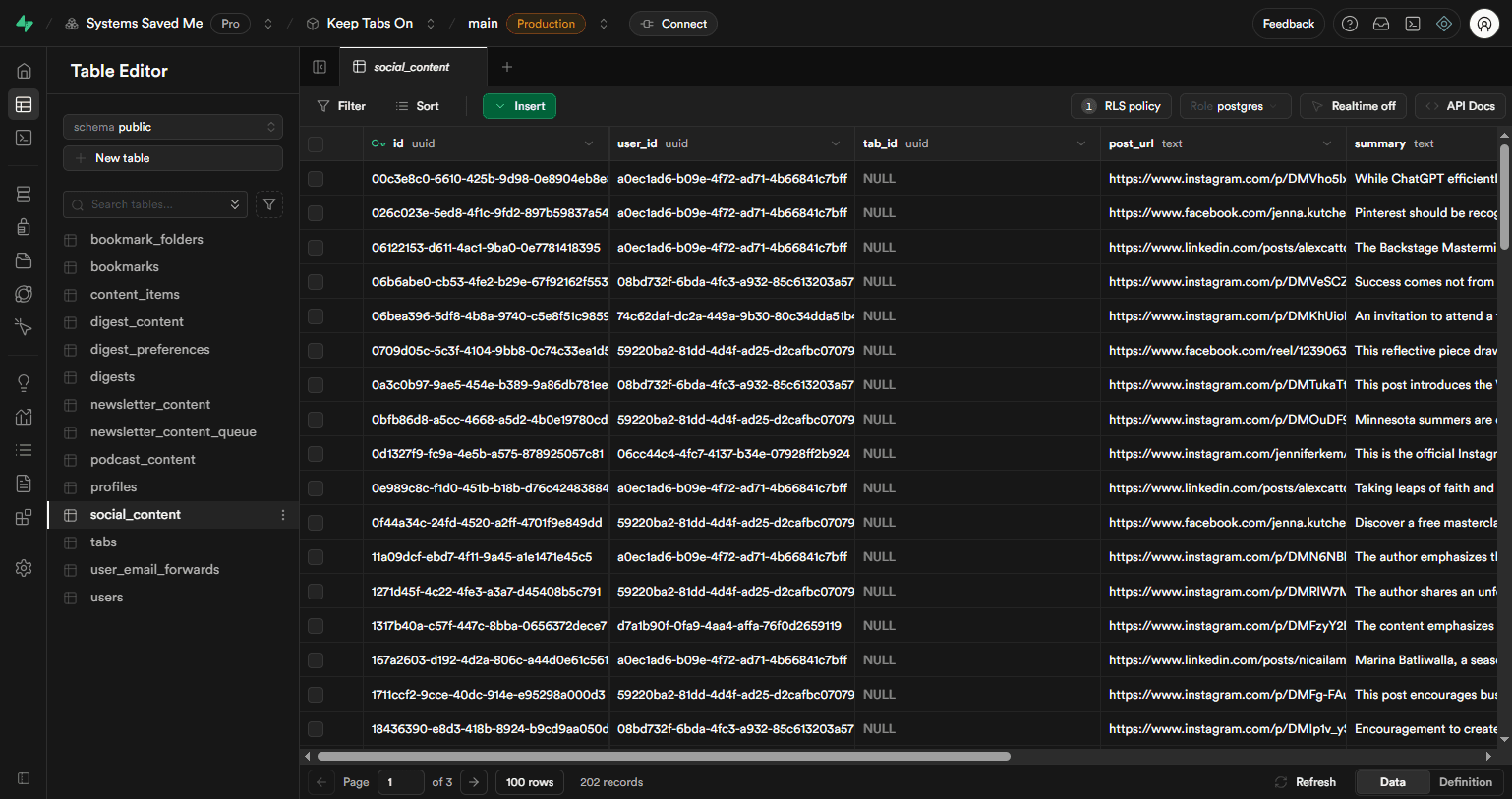 This project automated the process of scraping, summarizing, and storing content from multiple social media platforms, reducing manual work by over 90%. Using an n8n workflow, the system pulled posts from Facebook, Instagram, YouTube, LinkedIn, and RSS feeds, summarized them using AI, and stored the results in Supabase. The automation saved over 15 hours per week and ensured that content monitoring stayed consistent and organized.